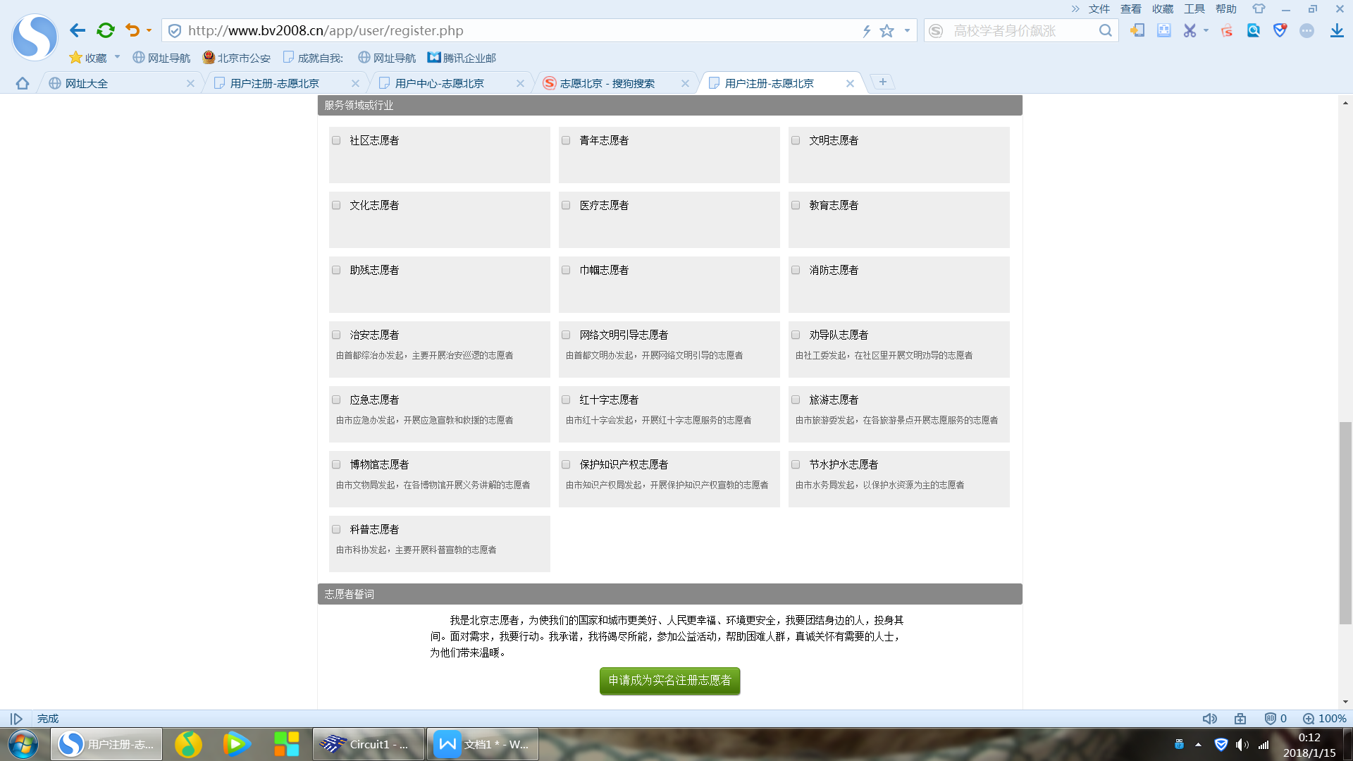 3、服务领域行业勾选“红十字志愿者”,信息填写无误后点击“申请成为实名注册志愿者”。